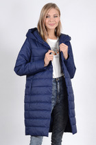 Универсальное полупальто с новой конструкцией без бокового шва с вертикальными рельефами идеально скрывает недостатки и подчеркивает достоинства фигуры. Полупальто с втачными рукавами, капюшоном и центральной застежкой на потайные и видовые кнопки . Карманы расположены в рельефах. Рост фотомодели 172смДлина по спинке - ок. 97 см., длина рукава - ок.64 см. Рост 170 см.Состав: полиэстер - 100%, утеплитель: Air Twin Light 100 г/m 2Цвет - синий