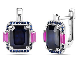 Серьги, 2 сапфир корунд октагон 8х10 мм/6.10 ct , 4 рубин корунд багет 2х4 мм/0.