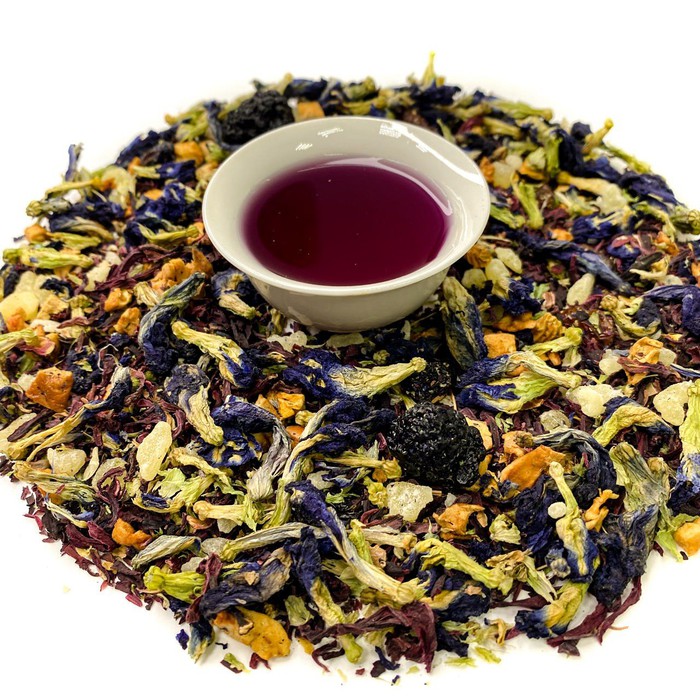 Оригинальный купаж, в основе которого среднелистовой гибискус и тайский синий чай. Напиток не содержит кофеина. Визуально приятный фиолетовый цвет расслабляет глаза, а процесс заваривания завораживает игрой красок с первых секунд.