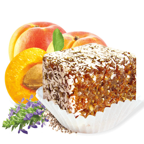 Состав:курага, вода, цикорий (пребиотик-инулин), финики, кукурузный крахмал, семена чиа, кунжутная паста, гороховая мука, кокос, красная рябина, агар-агар, стевия