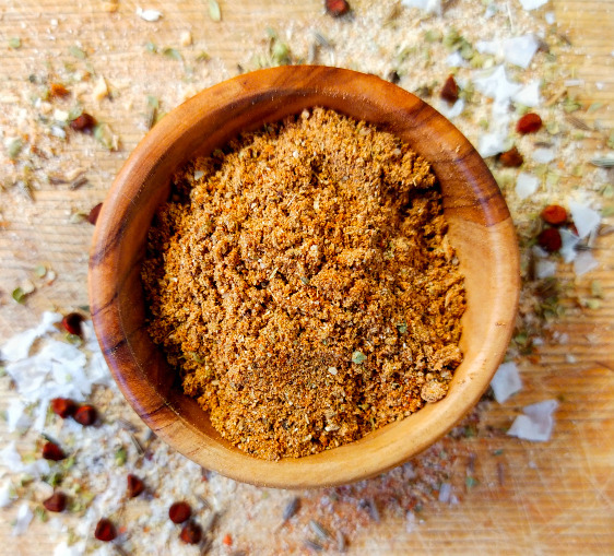 Состав: соль, морковь гранулы, лук сушёный, зелень петрушки сушёная, перец чёрный молотый, перец красный молотый, паприка красная молотая (может содержать следы глютеносодержащих злаков, яиц, сои, сельдерея, кунжута, орехов, молока или лактозы).