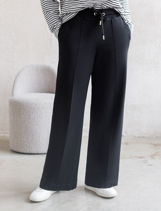 Состав: 95%Хлопок 5%ПУ Плотность: 240 Г/м2Брюки черного цвета прямого кроя выполнены из премиального футера-двухнитки. Лаконичный силуэт поддерживают застроченные стрелки, зрительно вытягивающие силуэт. Удобный пояс на резинке регулируется хлопковым шнурком с золотистой фурнитурой. Наличие эластана в составе изделия гарантирует комфорт и долговечность изделия. Эластичный материал хорошо пропускает воздух, позволяя телу дышать, и легко тянется, не ограничивая движения.