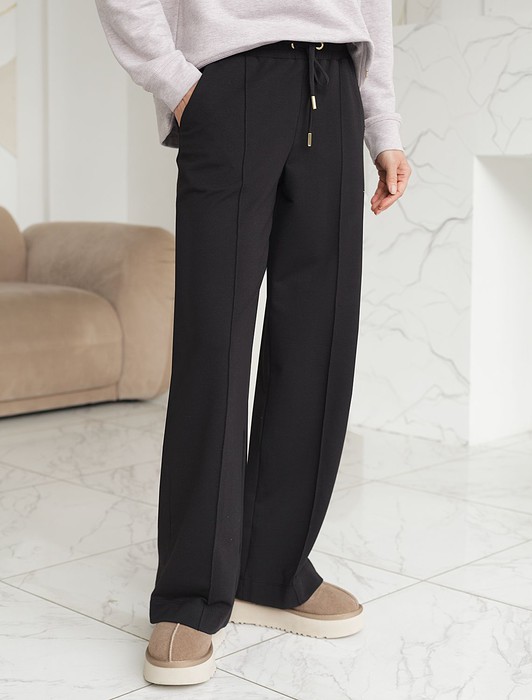 Состав: 95%Хлопок 5%ПУ Плотность: 240 Г/м2Брюки черного цвета прямого кроя выполнены из премиального футера-двухнитки. Лаконичный силуэт поддерживают застроченные стрелки, зрительно вытягивающие силуэт. Удобный пояс на резинке регулируется хлопковым шнурком с золотистой фурнитурой. Наличие эластана в составе изделия гарантирует комфорт и долговечность изделия. Эластичный материал хорошо пропускает воздух, позволяя телу дышать, и легко тянется, не ограничивая движения.