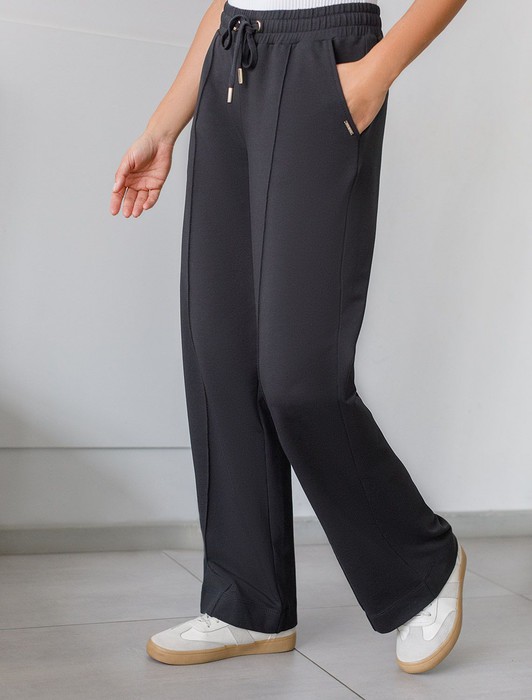 Стильный расклешенный крой добавляет изюминку в ваш образ. Эти брюки универсальны и могут стать отличным вариантом, как для занятий спортом, так и для повседневной носки. Они легко вписываются в повседневный образ, благодаря универсальности и элегантности. Достоинства фигуры подчеркиваются, а силуэт визуально вытягивается за счет кроя палаццо. Стильный расклешенный крой добавляет изюминку в ваш образ. В этих спортивных брюках вы будете чувствовать себя комфортно и уверенно, наслаждаясь каждым моментом дня.