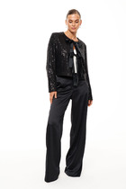 Брюки прямого кроя, на притачном поясе. Застежка - брючная тесьма-молния с обработанным гульфиком. В боковых участках пояса вставлена резинка для более комфортного прилегания. В брюках заутюжены канты. Длина брюк – 104 см.