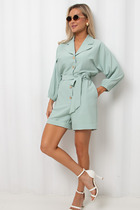 Комбинезон полуприлегающего силуэта. Комбинезон отрезной по линии талии. Лиф переда и спинки с рельефами. В среднем шве спинки вставлена потайная тесьма-«молния». Брюки длинные, широкие. По задним половинам брюк талиевые вытачки. По передним половинам односторонние складки. В боковые швы вставлены отлетные детали, которые переходят в завязки вокруг шей.