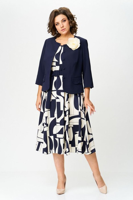 Состав: Жакет- Вискоза-60%; ПЭ-35%; Спандекс-5%; Платье- Вискоза-25%; ПЭ-70%; Спандекс-5%;