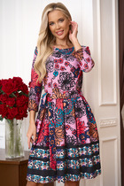 Платье с мелким принтом подойдет женщинам любой комплекции. Резинка, вшитая в талии, красиво драпирует его по фигуре. Пышная, отрезная юбка и рукав, собранный на резинку с небольшим воланом, создают красивый романтичный образ. Подчеркнуть талию можно с помощью пояса. Платье не просвечивает и подойдет для прохладных дней.