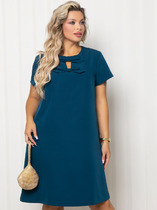Платье женское, полуприлегающего силуэта, выполнено из 2х видов ткани: из блузочного атласа и основной плательной с легким стрейчем. Перед отрезной по линии талии с нагрудными и талиевыми вытачками. Карманы функциональные от подреза с отрезными бочками. Отлетные детали верхней части лифа от кокетки заутюжены в низ. Спинка со шлицей в среднем шве и талиевыми вытачками. Рукав втачной одношовный с резинкой и сборкой по низу. В левом боковом шве тесьма-молния, потайная.
