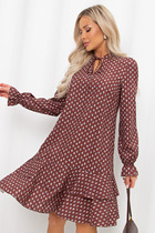 Платье свободного силуэта с цельновыкроенными рукавами вдлиной три четверти. Спереди обработана декоративная металлическая молния и складка. Рукава с притачными широкими манжетами. В боковых швах обработаны карманы. Спинка со средним швом, молнией и шлицей. Длина рукава – 39 см. Платье без подкладки. Длина- 115 см.