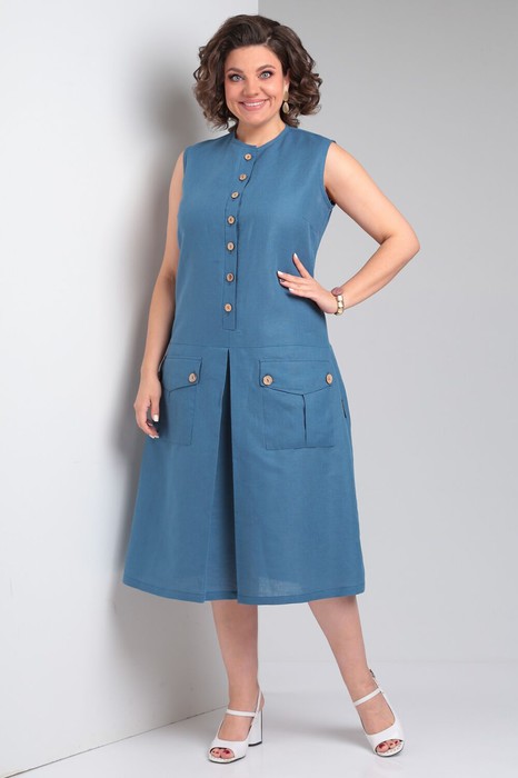 Платье выполнено из качественного белорусского льняного полотна (пр-во Орша). Ткань не тянется. Все пуговицы на платье натуральные кокосовые.