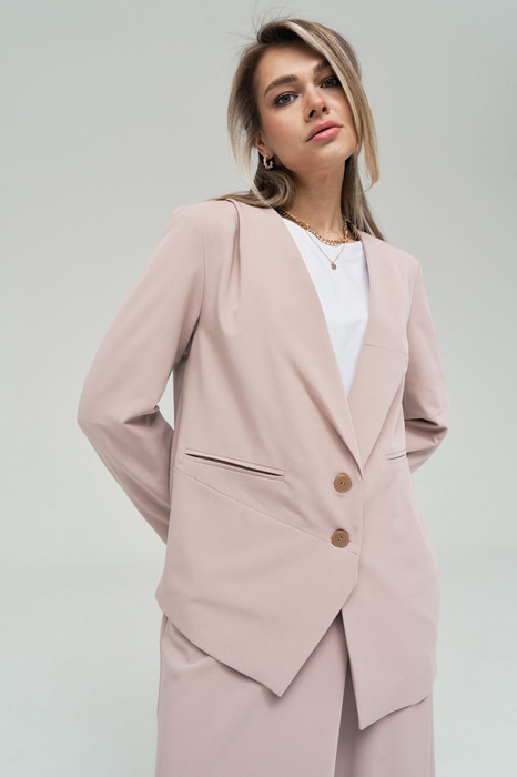 Этот жакет — идеальное дополнение к вашему гардеробу! Ассиметричный низ придает ему современный и стильный вид, подчеркивая индивидуальность. Без воротника, он создает легкий и воздушный образ, подходящий для различных поводов. Шлица по спинке добавляет утонченности и позволяет легко передвигаться. Необычная форма переда придает жакету характер. Карманы добавляют функциональности, а красный цвет придаст вашему облику страстность и энергию.