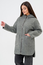 Модель прямого силуэта с центральной застёжкой на петли и пуговицы, без подклада. Воротник пиджачный. Спереди фигурные накладные карманы с клапанами, которые застёгиваются на пуговицу. Сзади кокетка и средний шов. Плечо спущенное. Рукав короткий.