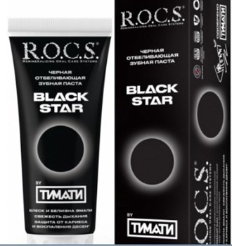 Белоснежная улыбка и здоровье полости рта – основные функции зубной пасты R.O.C.S. BLACK STAR «Черная отбеливающая». Паста имеет богатый ферментативно-минеральный состав, включающий гранулы натурального древесного угля. Именно черный древесный уголь эффективно снимает зубной налет, деликатно удаляет окрашивания и мягко полирует эмаль, придавая ей естественный здоровый блеск. Кроме этого, обеспечивается высокая степень защиты от кариеса, пародонтита, гингивита и других стоматологических заболеваний. Осуществляется не только отбеливание зубной эмали, но и общее оздоровление ротовой полости.