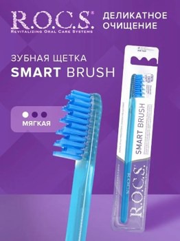 Уникальная форма головки зубной щетки R.O.C.S. - скошенная к концу головки щётки подстрижка щетины - повышает качество чистки поверхности зубов и позволяет с легкостью проникать в труднодоступные участки зубного ряда, а так же качественно очищать пространство между зубами, не повреждая десны. Тонкая плоская прозрачная ручка обеспечивает необычайную маневренность на всех участках зубного ряда. Особенности щетины Зубная щетка R.O.C.S. - Модельная подстрижкаЗубная щётка R.O.C.S. Модельная (разноуровневая подстрижка). Нестандартная разноуровневая пострижка щетины облегчает проникновение к труднодоступным участкам полости рта и повышает качество очищения дальних зубов, небной и язычной поверхностей зубов. Щетинки на конце головки укорочены, что дает возможность качественной очистки «дальних зубов» (ретромолярная область). Волокно щетины производства фирмы «Pedex» (Германия) – мирового лидера в производстве высококачественных материалов. Кончик каждой щетинки закруглен и тщательно отполирован. Высококачественная щетина не повреждает эмаль зубов, не царапает зубные реставрации и не травмирует десны.