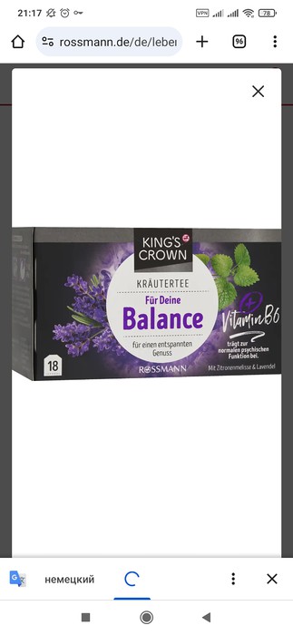 Время сделать паузу! В бешеном ритме повседневной жизни нас каждый день ждет множество испытаний. С нашим чаем Kings Crown For Your Balance вы сможете немного отдохнуть от этого. Витамин B6 способствует нормальной психологической функции. Сладкая композиция травяного чая имеет освежающий вкус мелиссы и завершается терпкой лавандой и корнем ашваганды. Побалуйте себя приятным отдыхом.