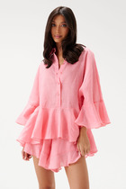 Рубашка прямого кроя выполнена из текстильного черного полотна с принтом вертикальной полоски.Характеристики: прямой крой, отложной воротник, застежка центральная - петли пуговички, рукав слегка спущен по низу рукава манжета на пуговичках, спинка отрезная, низ в изделии с плавным срезом, в боковых швах разрезы. Длина спинке 73 см, длина рукава 77 см от края горловины.