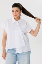 Рубашка прямого свободного кроя. Выполнена из хлопкового (смесового) полотна нежно-розового цвета. Воротник отложной. Рукав втачной, спущенный, широкий. Спинка отрезная с кокеткой со сборкой. В боковых швах разрезы (13,5 см). На уровне груди накладные карманы. Застёжка центральная – пуговички. Длина рукава от линии втачивания 45,5 см. Длина спинки 74 см. Рубашку дополняют шорты А1541