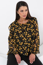 Рубашка прямого свободного кроя выполнена из текстильного полотная песочного цвета в белую полоску. Характеристики: прямой свободный крой, отложной воротник на стойке, застежка центральная на петли пуговицы, по переду крупные карманы, рукав спущен, по рукаву декоративные складки, по низу рукава широкая манжета, спинка отрезная с декоративными складками, низ изделия с плавным срезом.Длина по спинке 80 см, длина рукава от края горловины 74 см.