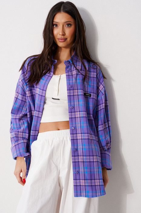 Рубашка прямого свободного кроя, выполнена из ворсистого полотна в клетку. Характеристика: воротник отложной, застёжка центральная на пуговицы, по переду справа на уровне линии груди карман, слева - брендированная нашивка Annete, рукав спущенный свободный, с широкой манжетой на пуговице, спинка отрезная с скоалками. Длина рукава от края горловины 77 см. Длин по центру спинки от края горловины 77 см.