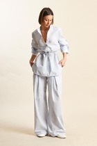 27.03 Vilatte Блузка в полоску с цельнокроеным коротким рукавом из легкого хлоп