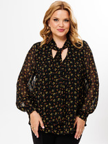 Рубашка из льняной ткани, свободного силуэта, удлиненной спинкой, застежкой на пуговицы спереди и рубашечным воротником. Спинка с отрезной кокеткой и бантовой складкой. Рукав короткий, цельнокроеный. На переде отрезные кокетки и накладные карманы с авторским принтом. Некоторые швы изделия необработаны, при энзимной стирке обретают стильную вытрепанность.