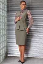 Блузка женская свободного покроя, удлиненная, с рубашечным рукавом на манжете по низу, по переду на уровне груди - накладной карман, застежка спереди на планку с пуговицами, воротник рубашечный на стойке, низ изделия фигурный, с закругленными разрезами по боковым швам.