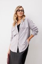 Стильная блуза свободного кроя с центральной застежкой на пришивные пуговицы, скрытые планкой из основной ткани. Воротник отложной. Уникальность блузе придает пышный рукав, дополненный притачной манжетой с застежкой на красивую пуговичку в форме банта.
