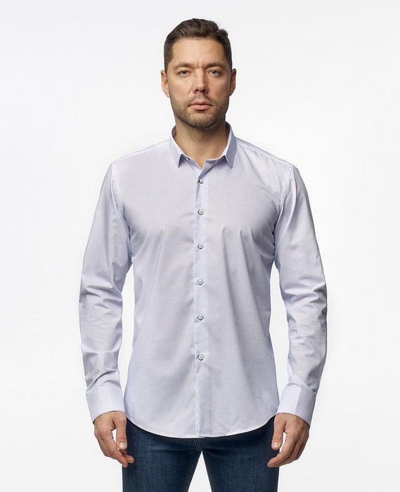 Мужская рубашка полуприталенного кроя, с длинным рукавом, застегивается на пуговицы.