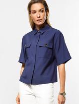 14.04 Vilatte Блузка в стиле сафари из плотного лиоцелла D29.239 дымчатый синий