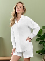 Рубашка женская из гладкокрашеного тканого полотна, свободного покроя, с длинными втачными рукавами, стояче-отложным воротником, фигурной линией низа и центральной бортовой застежкой на обметанные петли и пуговицы. Рукава – с притачными манжетами застегиваются на две обметанные петли и пуговицы.При выборе изделия в белом цвете идеальным решением будет выбор белья нейтральных