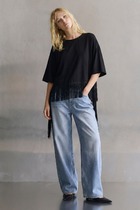 Левая верхняя часть переда с накладным карманом фигурной формы с декоративной вышивкой.