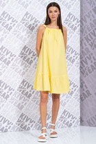 Сарафан женский полуприлегающего верху силуэта книзу прямой, на двойных широких бретелях, с V – образным вырезом по горловине спинке и перекрещенными бретелями, по боковым разрезы. Перед с нагрудными выточками. Спинка со средним швом.
