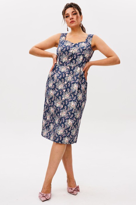 Погрузитесь в атмосферу древних караванных путей с этим восхитительным сарафаном, выполненным в благородном оттенке «восточная синева». Загадочный узор «турецкие огурцы», украшающий лёгкую хлопковую ткань, придаёт образу ноту восточной таинственности и неповторимый колорит.