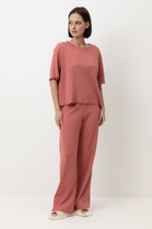 Домашний костюм из тканой вискозы состоит из рубашки и длинных широких брюк. Принт : «Туаль де Жуи» (Toile de Jouy) — это французская ткань с одноцветным рисунком в белых тонах на синем фоне, изображающим пасторальные сцены, пейзажи или сцены из жизни XVIII века. Рубашка с английским воротником, на пуговицах, с длинным рукавом без манжет. Брюки на резинке. Подгиб и строчка по низу рукава и рубашки и низу брюк. XS-XS(170-84-90), S-S(170-88-94), M-M(170-92-98), L-L(170-96-102), XL-XL(170-100-106)
