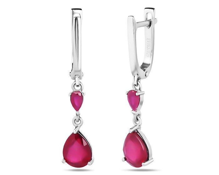 Серьги, арт.658596 Серебро Серебро 925, 4,12 гр., 2 рубин корунд груша 7х9 мм/4.45 ct. , 2 рубин корунд груша 3х5 мм/0.63 ct