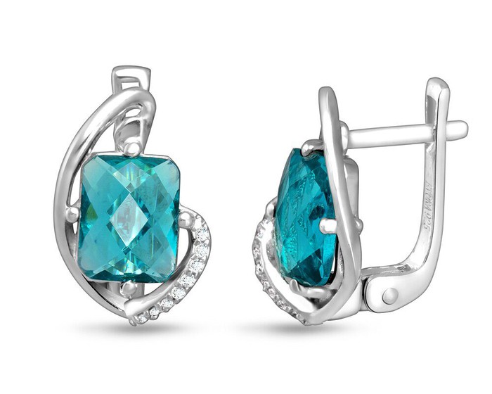 Серьги, арт.654695 Серебро Серебро 925, 4,22 гр., аквамарин выращ.