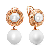 Серьги из золочёного серебра с культивированным белым жемчугом 925 пробы С50182