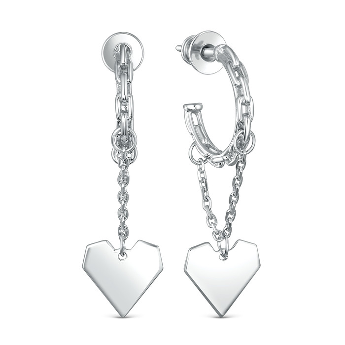 Совместные покупки Пермь Ювелирные украшения и бижутерия Серьги — Серьги цепи из серебра родированные - Сердца 925 пробы 220-10-023р