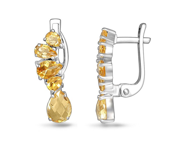 Серьги, арт.654663 Серебро Серебро 925, 4,58 гр., цитрин
