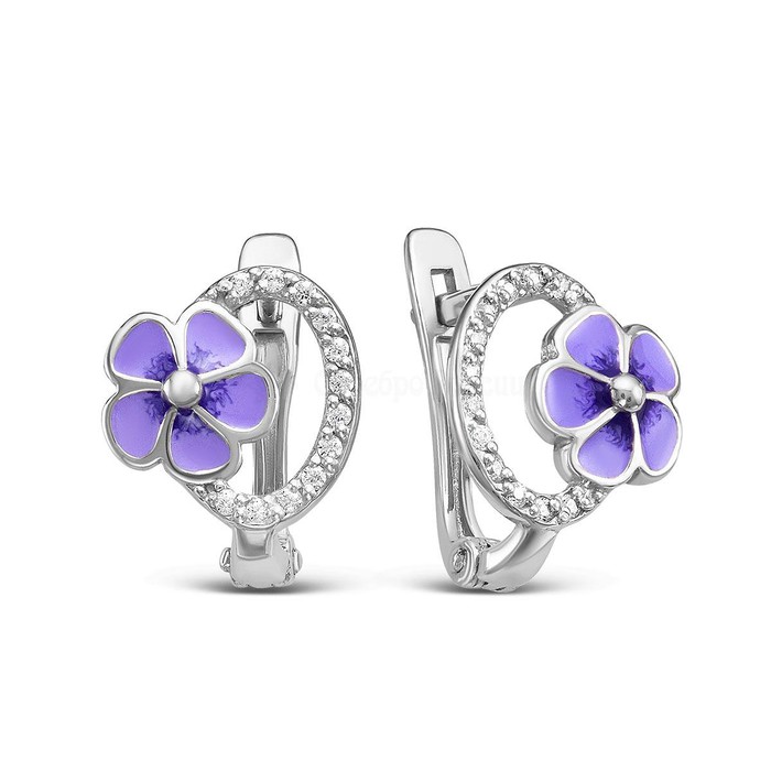 Совместные покупки Пермь Детские аксессуары Украшения, бижутерия — Серьги детские из родированного серебра с эмалью и фианитами - Фиалки 925 пробы