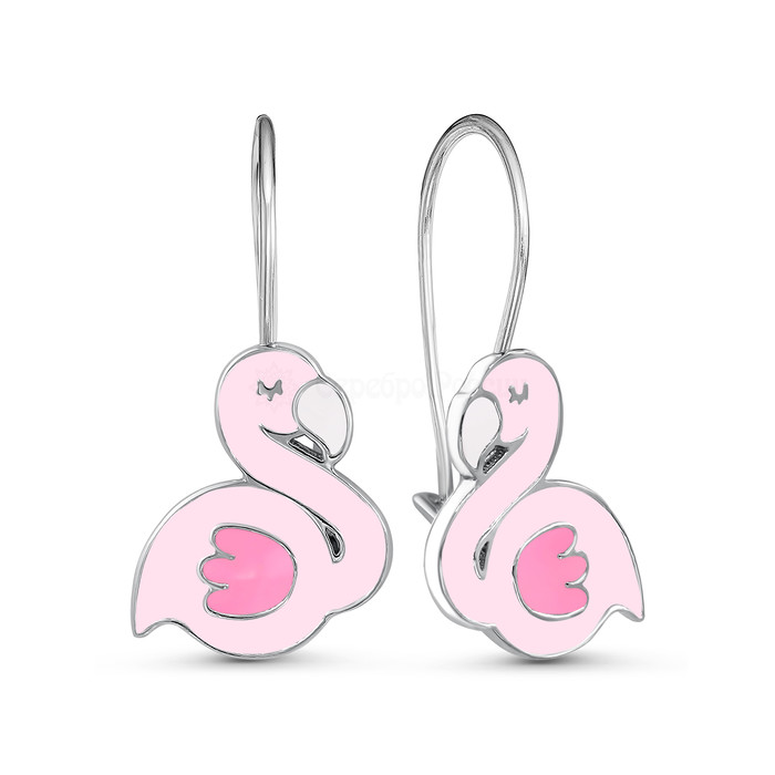Серьги детские из серебра с эмалью родированные - Фламинго