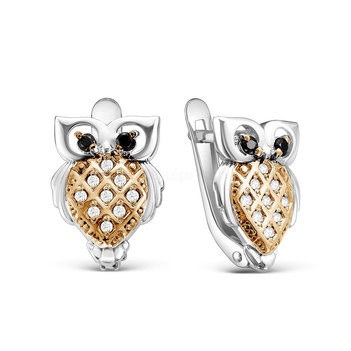 Серьги детские из серебра с фианитами и позолотой родированные - Совушки 925 про