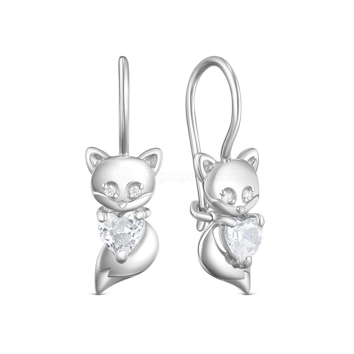 Серьги детские из серебра с фианитами родированные - Лисички 925 пробы С-4545-Р