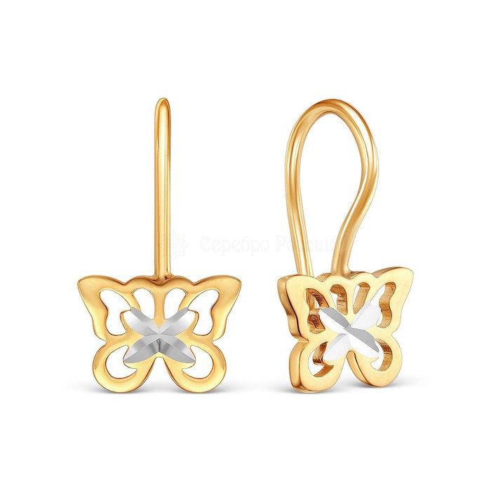 Серьги детские из золочёного серебра на петле с алмазной огранкой - Бабочки 925