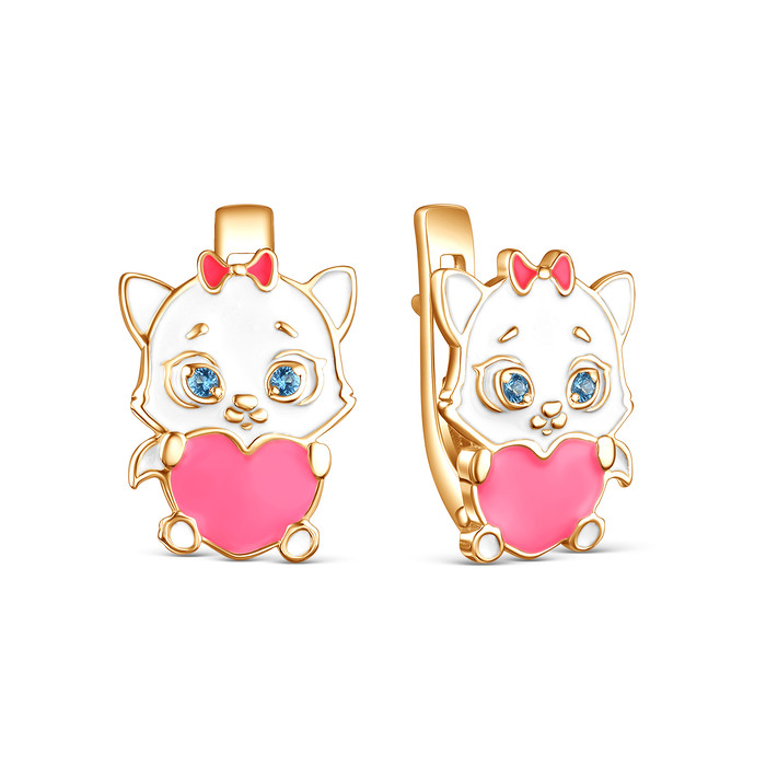 Совместные покупки Пермь Ювелирные украшения и бижутерия Серьги — Серьги детские из золочёного серебра с эмалью и фианитами - Кошечки 925 пробы 23