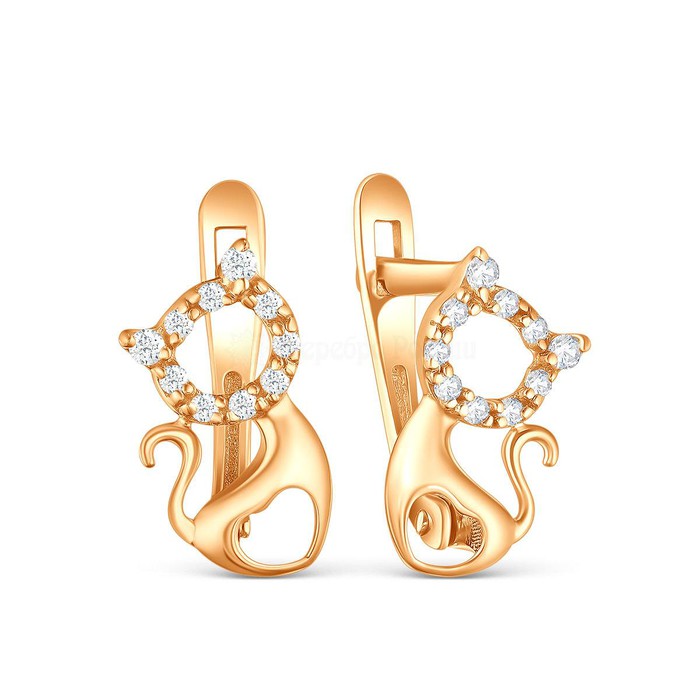 Серьги детские из золочёного серебра с фианитами - Кошки