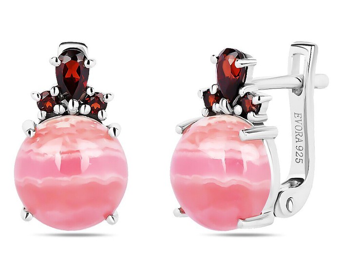 Серьги, арт.658554 Серебро Серебро 925, 5,54 гр., гранат , родохрозит
