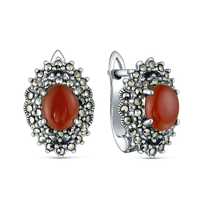 Совместные покупки Пермь Ювелирные украшения и бижутерия Серьги — Серьги из чернёного серебра с натуральным агатом и марказитами 925 пробы HE0358-