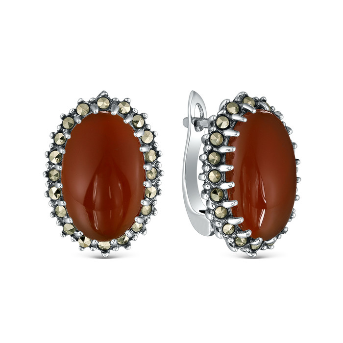 Совместные покупки Пермь Ювелирные украшения и бижутерия Серьги — Серьги из чернёного серебра с натуральным агатом и марказитами 925 пробы HE0489-